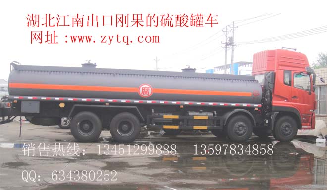 發(fā)布時間:2012-10-13 10:13:53 瀏覽量:次2010年7月27日,我公司出口了一臺硫酸罐車到剛果**,此車采用東風天龍前四后八的的底盤,罐體20立方米車輛圖片如下